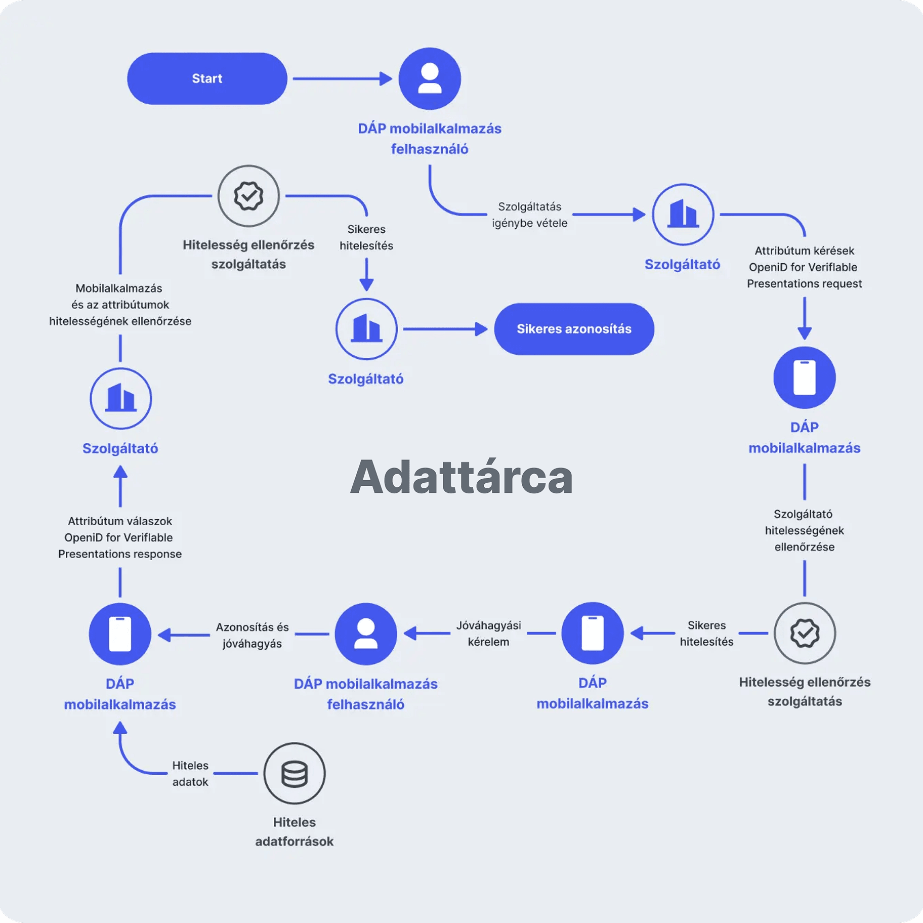 Ha egy állami vagy piaci szereplő csatlakozni szeretne az Adattárcához, előzetesen el kell végeznie a regisztrációs folyamatot. Így kerülhet be a Hitelesség ellenőrzés szolgáltatásba, és ezután használhatja az Adattárca szolgáltatást.